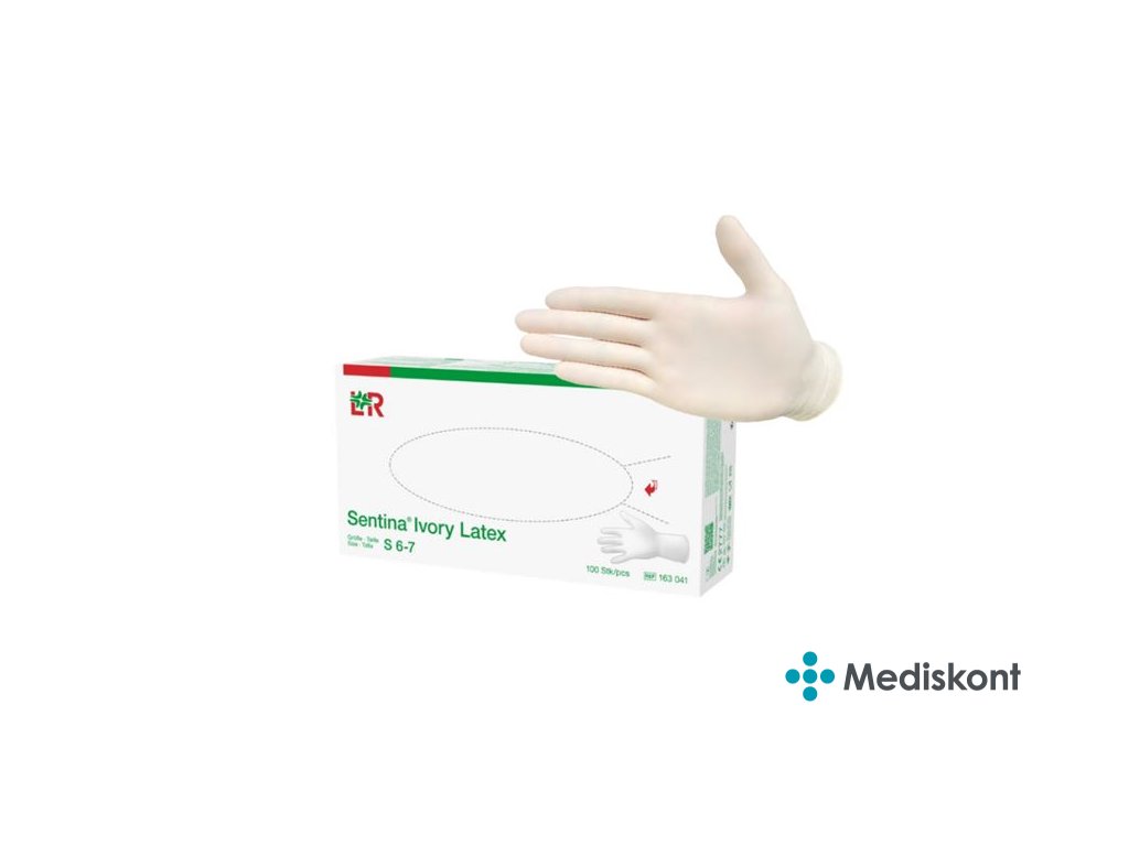 L&R rukavice latexové Sentina Ivory, bílé, nepudrované, 100 ks