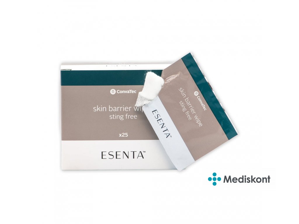 Ubrousek vyndáme z obalu. Kůži lehce ubrouskem otřete a nechte zaschnout. Ujistěte se, že je kůže zcela suchá, než na ni začnete lepit stomické pomůcky. Pro dokonalou ochranu používejte Ochranný film ESENTA™ při každé výměně pomůcek. Opětovná aplikace se doporučuje každých 12 až 72 hodin závislosti na stavu pokožky. Film ESENTA™ se opakovaným použitím na pokožce nevrství.
