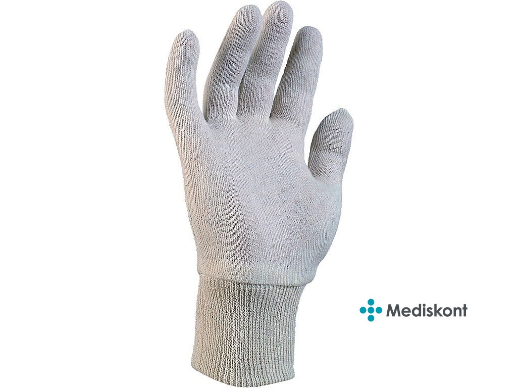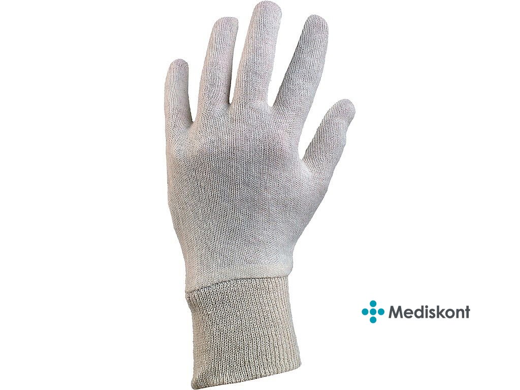 Textilní šité rukavice ze směsového režného úpletu s našitou pružnou úpletovou manžetou. Doporučené aplikace: