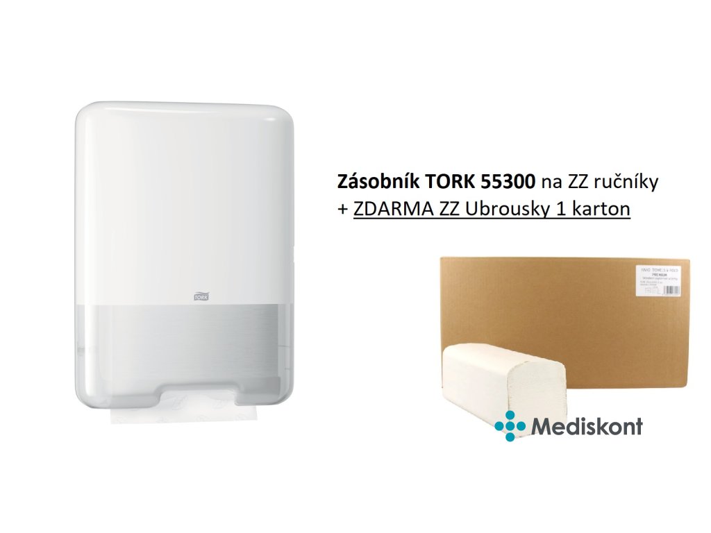 Využijte jedinečnou nabídku! Při zakoupení zásobníku na ZZ ručníky TORK 553000 od nás získáte 1 karton kvalitních ZZ ručníků zcela ZDARMA.