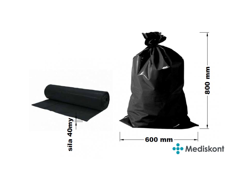 Pytle na odpad 60 l / 600x800 mm / 40M / 25 ks / černé