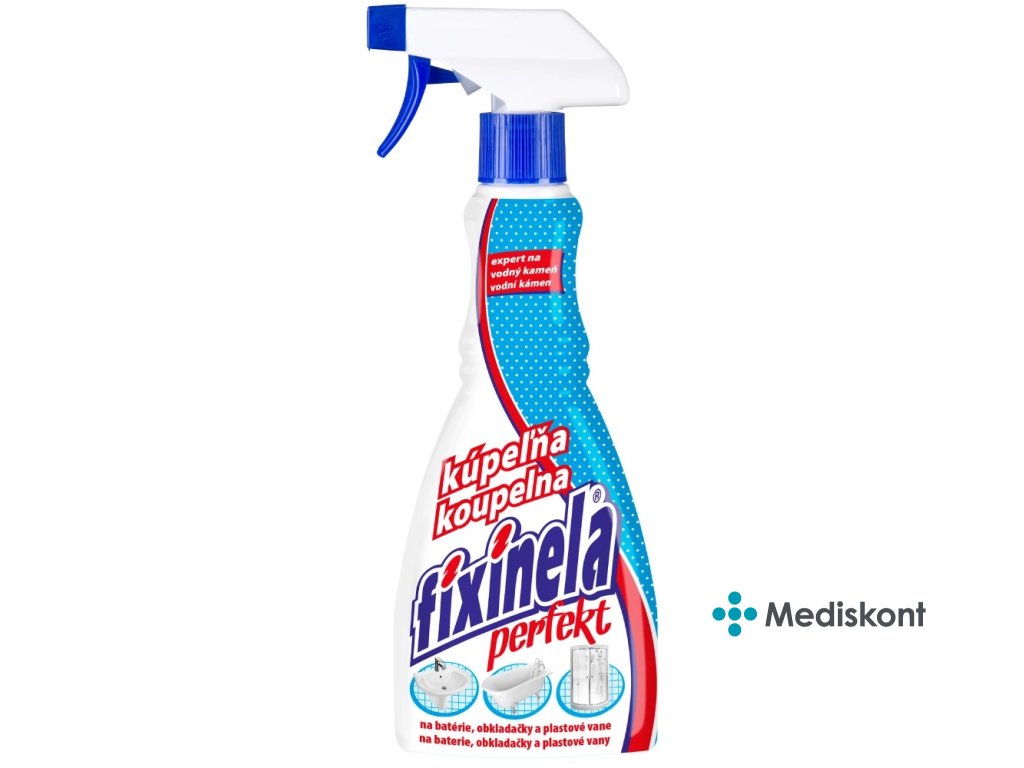 Fixinela Perfekt Koupelna - Čistič na plastové vany, umyvadla, vodovodní baterie, obkládačky, odstraní nečistoty a vodní kámen, zanechá příjemnou vůni a dokonalý lesk. Odstraňuje nečistoty a vodní kámen, zanechává příjemnou vůni a dokonalý lesk čistého povrchu. Spárám vrací původní barvu. Nepoužívat na materiály podléhající účinkům kyselin.