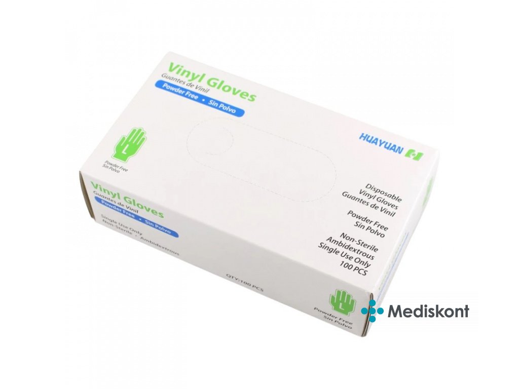 Huayuan rukavice vinylové 100 ks, transparentní, nepudrované