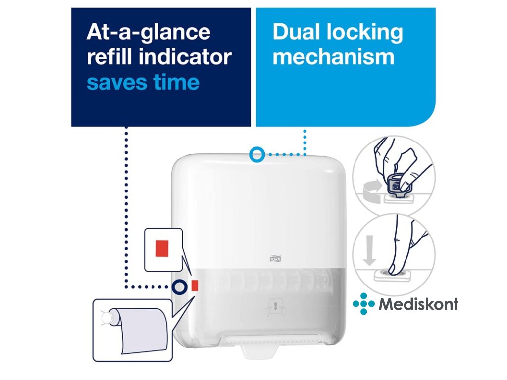 Zásobník na papírové ručníky v roli Tork Matic® v designu Elevation nabízí snadnou údržbu pro zajištění optimálního provozu toalet a umýváren s velkou návštěvností. Zásobníky Tork Elevation se vyznačují funkčním, moderním designem, který na vaše hosty udělá trvalý dojem.
